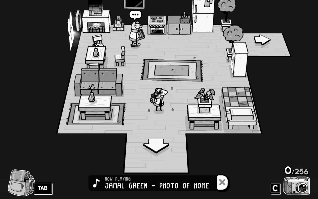TOEM is a short and sweet puzzle adventure featuring a camera. The protagonist goes from place to place across this adorable black-and-white world with a camera, taking pictures of items throughout the map in order to complete quests and solve puzzles. None of the puzzles were particularly difficult, making this a very casual puzzle game, but some solutions were kind of clever or interesting in some way. Since it isn’t very long, I would recommend playing as much as possible in a single sitting, as that makes it easier to remember where objects are for solving the trickier puzzles or remembering where an NPC is for specific trophies.